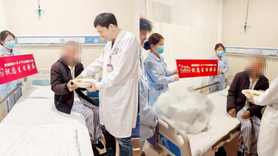 更令刘大爷惊喜的是,住院期间恰逢他的生日。当一碗热气腾腾的生日面端到床头,泌尿科医护人员围在身旁唱起生日歌时,这位平日里沉默寡言的老人眼眶湿润了。“没想到在医院还能过生日,你们比亲人还亲!”在赵凤军主任和武彤护士长的带领下,科室用一场简单却温暖的仪式,让刘大爷真切体会到“医者仁心”的温度。